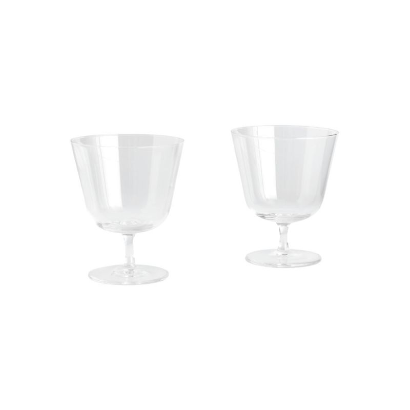 Curve Stem Glass Sæt af 2. Curve Stem Glass har en elegant silhuet med let udadbøjet kant, der giver et enkelt og sofistikeret udtryk. Glassene er mundblæst i delikat glas med 20% genbrugsmateriale og har både rummelig skål og slank stilk ideelle til vand, vin eller andre drikke. Sælges som sæt af to og passer smukt sammen med HAYs øvrige stel. Perfekt til både hverdagsbrug og særlige anledninger.