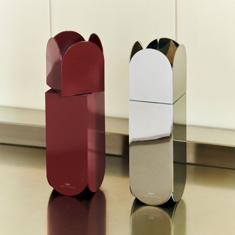 Designet av den belgiske duoen Muller Van Severen er Arcs Salt & Pepper Grinder kjennetegnet ved en sammenhengende kjede av vertikale buer, som omslutter den justerbare keramiske kvernen og skaper et funksjonelt kjøkkenredskap med en elegant, skulpturell silhuett.