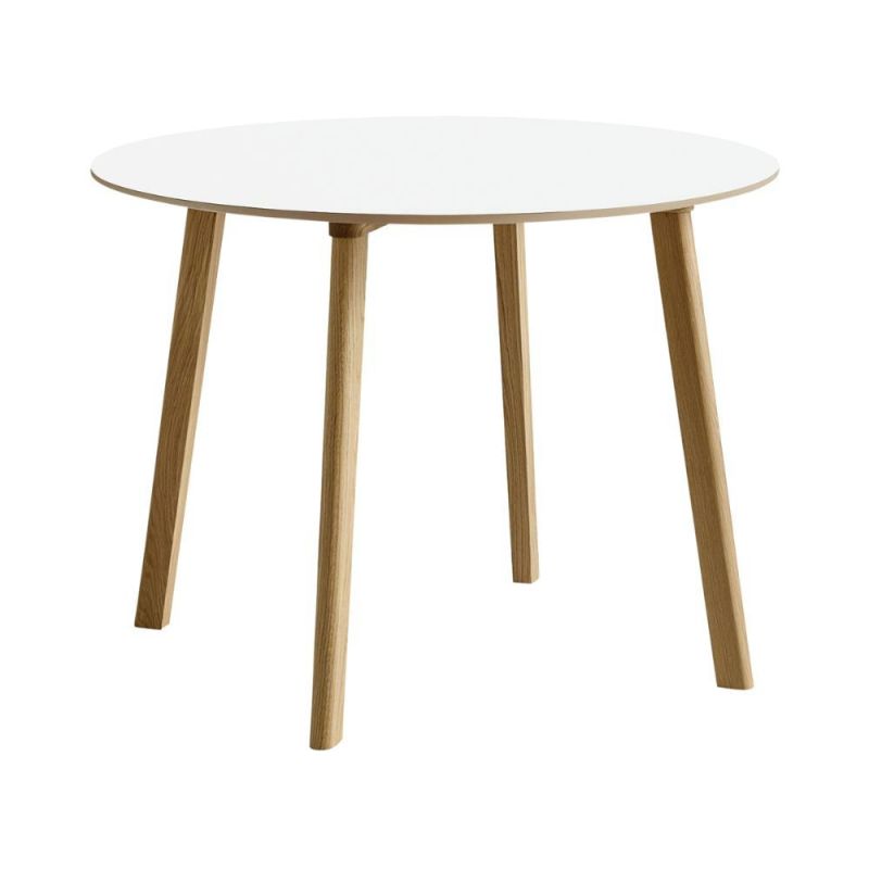 CPH Deux 220 bord. Rundt bord med enkelt og stilig design fra brødrene Bouroullec. Perfekt for kafeer, møterom og hjemmet. Finnes i flere størrelser med solid treramme og slitesterk laminatbordplate i forskjellige farger.
