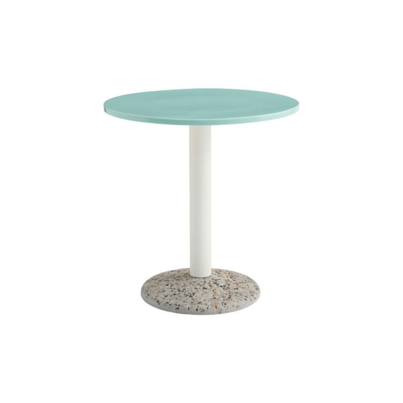 Keramisk bord utendørsbord. Designet av Müller Van Severen for HAY. Et minimalistisk og fargerikt utendørsbord med porselensplate, stålsøyle og betongbase. Enkle, slitesterke og enkle å kombinere med HAYs utestoler, ideelle for alt fra terrasser til kaféområder.