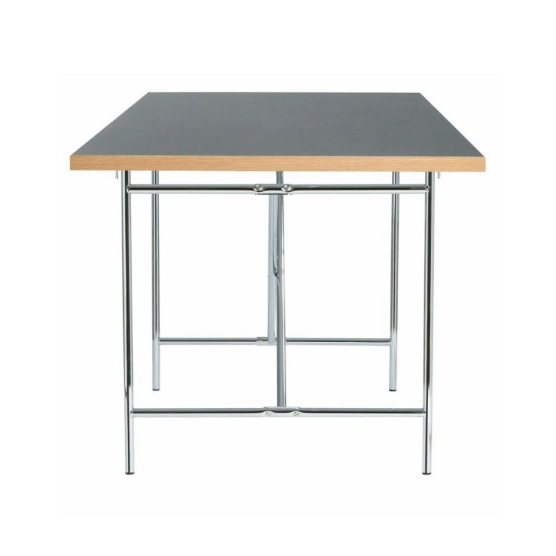 EIERMANN2 spisebord (200x90 cm). Eiermann2-bordrammen er ideell som spisebord takket være den sentralt plasserte tverrstangen, som gjør det komfortabelt å sitte på begge sider av bordet. Bordplaten hviler på rammen via myke gummiputer som sikrer stabilitet og beskytter overflaten.