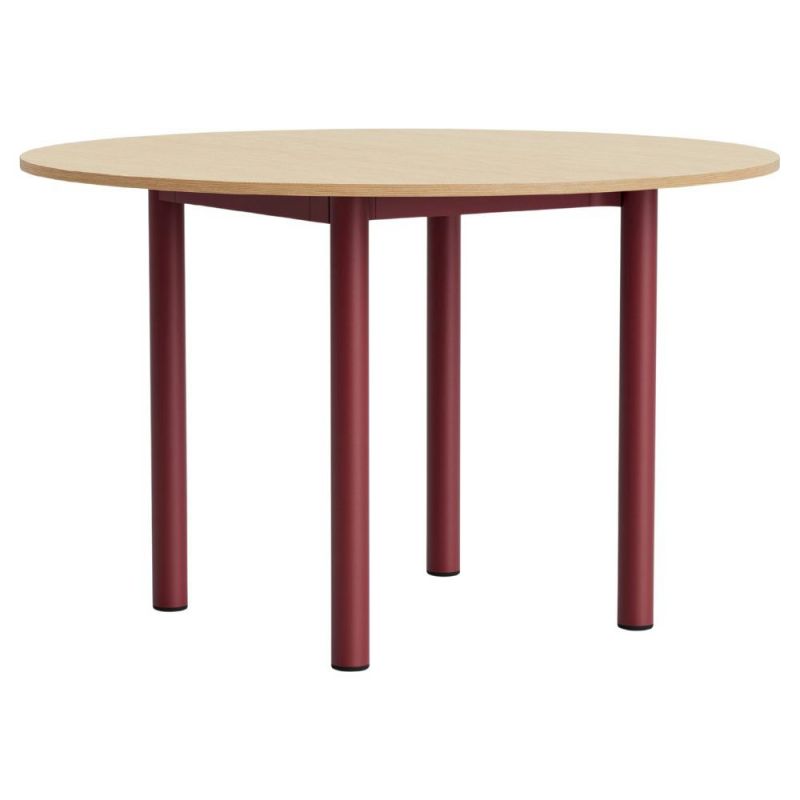 Annex Table Round, designet af John Tree for HAY, kombinerer afbalancerede proportioner med solid konstruktion. Rammen og de rørformede ben er i massivt egetræ eller aluminium af mindst 75% genanvendt forbrugeraffald, mens bordpladen fås i flere varianter, bl.a. Really Textile Tabletop af 70% genanvendte tekstiler. Med sit bevidste materialevalg og udvalg af størrelser er det et alsidigt bord til både spisning, arbejde og samvær.