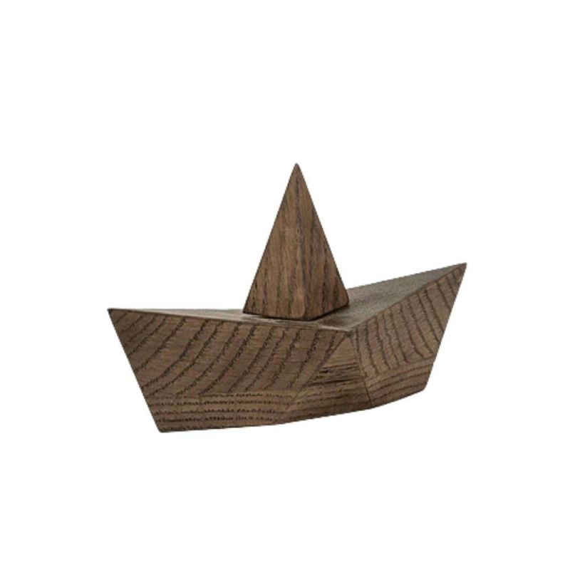 Admiral, papirbåten i tre. En hyllest til barndommens kreative papirbåter, her tolket i massiv, røkt eik. Utstyrt med skjult magnet som holder seilet på plass - et stilrent designobjekt med nostalgisk sjarm.