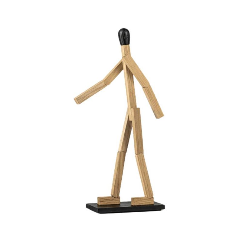Fyrstikkmannen. En barndomsklassiker gjenskapt i massiv eik. Med bevegelige armer og ben samt magneter i føttene for balanse. Et funksjonelt designobjekt og nostalgisk hyllest til de enkle gleder.