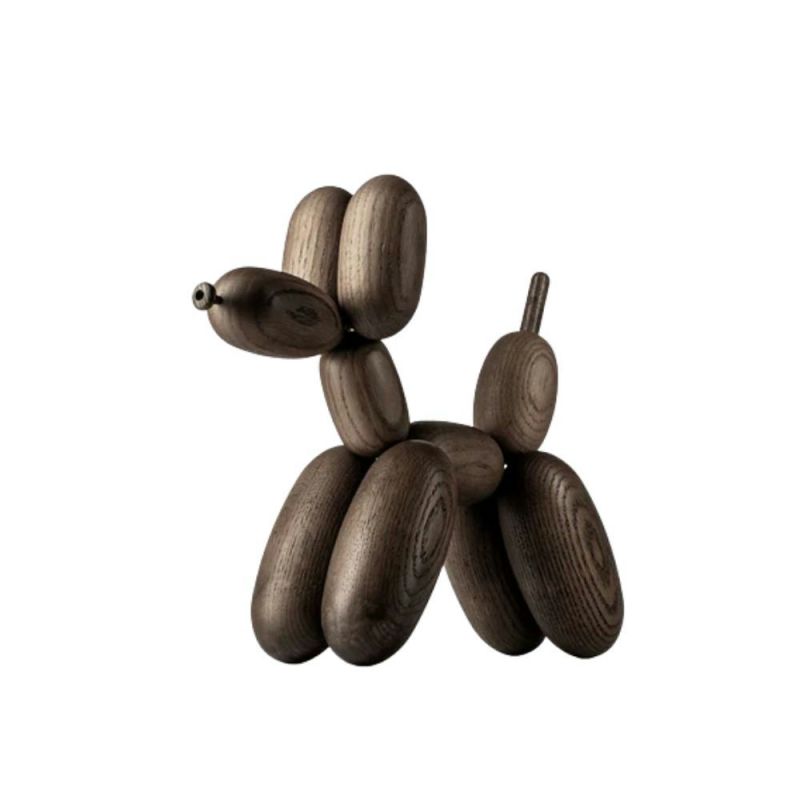 Ballon dog. En hyllest til barndommens ballonghunder her skapt i massiv, røykfarget eik med bevegelig hode og hale. Et lekent designobjekt som aldri mister pusten.
