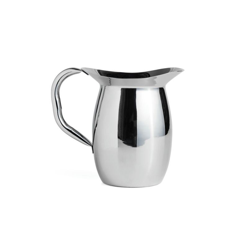 Med et slankt håndtag og en bredt udformet tud, der gør det nemt at hælde, præsenterer HAY Indian Steel Pitcher - et enkelt og funktionelt design. Kanden er fremstillet i Indien af rustfrit stål med en blank sølvfinish..