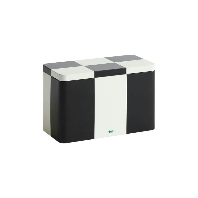 Tin Containers fargerik oppbevaring med grafiske mønstre. HAYs Tin Containers er dekorative og funksjonelle oppbevaringsbokser med fargerike grafiske design. Perfekt til tørrvarer eller som stilig oppbevaring hjemme. Tilgjengelig i mange størrelser, former og mønstre.