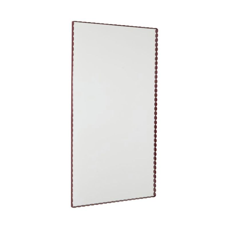 Arcs Mirror speilbilde med skulpturelle detaljer Arcs Mirror er designet av Muller Van Severen og er omgitt av buede former som skaper en elegant, bølget kant. Tilgjengelig i rustfritt stål med speilfinish eller pulverlakkert stål i flere farger og størrelser fra små runde til store rektangulære speil. Perfekt for alle rom.