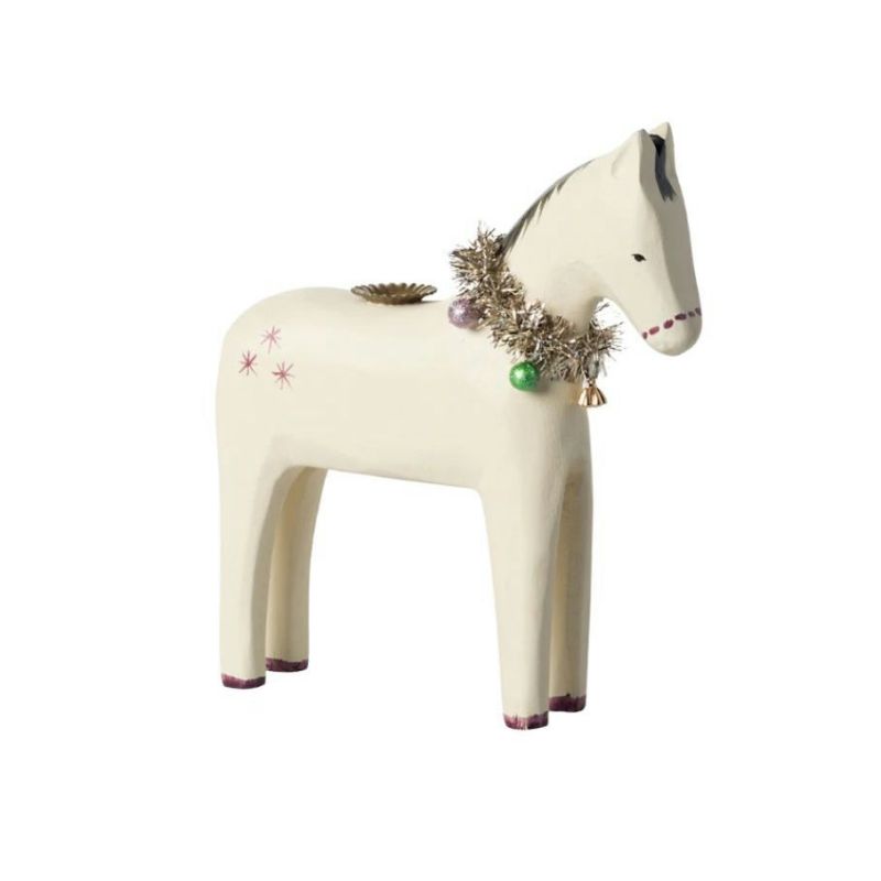 Skap en koselig julestemning i ditt hjem med denne trehest lysestake. En gammel Maileg klassiker i en oppdatert versjon. Stearinlys Ø2,2 cm passer perfekt til denne hesten. Merk: Forlat aldri stearinlys uten tilsyn.