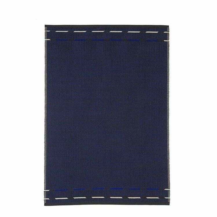 Vibeke Klint tæpper VK4 i en smuk fladvævet udgave en skønne blå nuancer giver en dejlig og behagelig dybde i indretningen. Tæppet er designet af Vibeke Klint, som her praktiserer teknikken med "lynilds" detaljer, som giver en helt unik vævning. Tæpperne fra Nordic Modern er håndvævet hvorfor hvert tæppe er unikt da vævningen varierer en smule fra tæppe til tæppe.