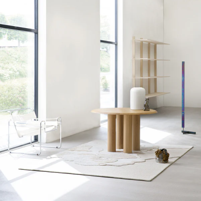 Den nye serien av livlige tepper fra FACNE Design Studio for Massimo fanger lekfullhet i form av moderne kunstverk. Med inspirasjon fra himmelens temperament er CLOUD9-serien håndvevd og håndtuftet med forskjellige vevteknikker av 100 % New Zealand-ull. Et poetisk øyeblikksbilde av skyer, sømløst skapt fra forskjellige hælhøyder og en boucle-vevteknikk.