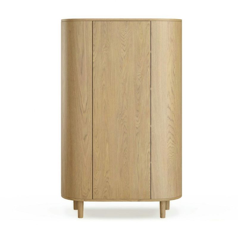 Elegant garderobeskap med ovalt formspråk og gjennomtenkt funksjonalitet perfekt til barne- eller soverommet. Skapet rommer 3 seksjoner med totalt 12 hyller samt en praktisk klesstang, så du enkelt kan organisere klær og tilbehør. Touch-åpning gir et stilrent og moderne uttrykk. Kjennetegnet ved KAS Kopenhagens signaturdesign med koniske ben og usynlige skruer for et rent, minimalistisk utseende.