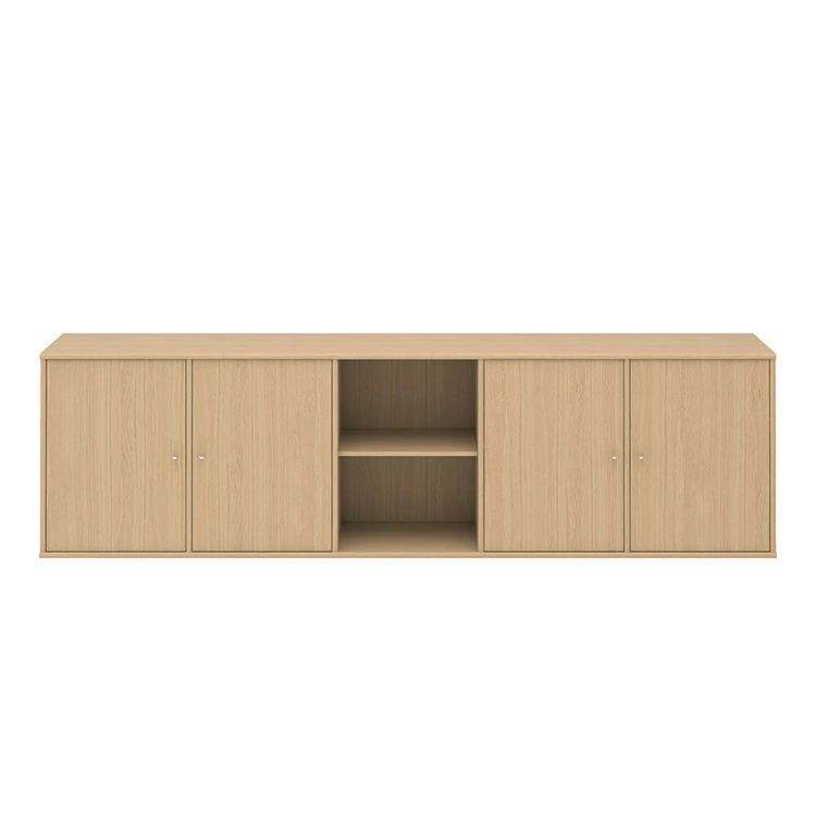 Den romslige skjenken tilbyr både åpne hyller og lukkede skap, perfekt for oppbevaring og utstilling av eiendelene dine.