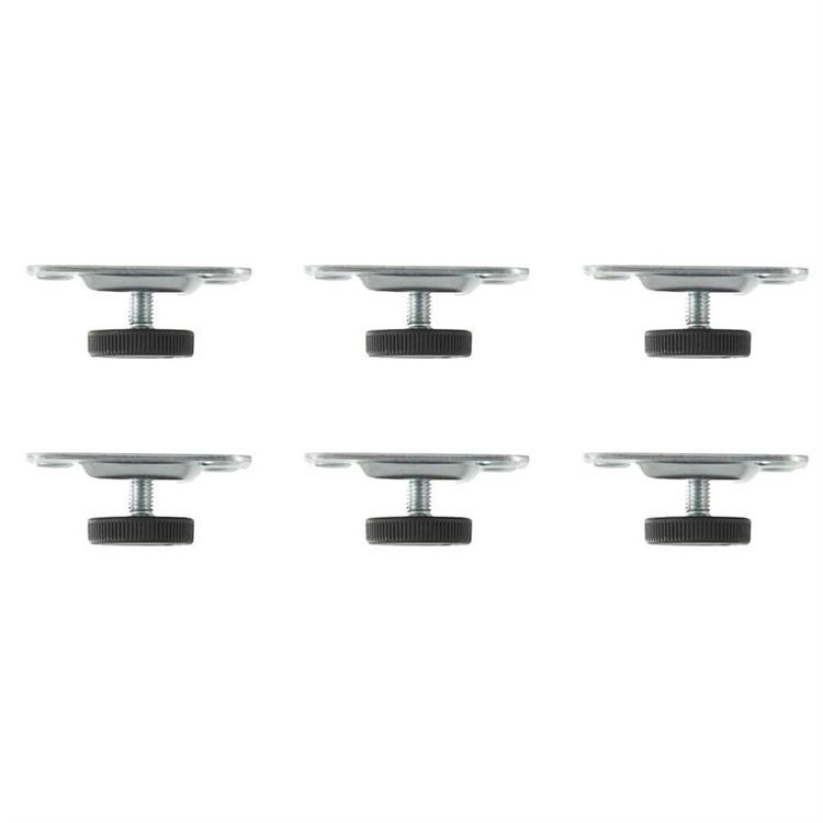 Hvis du foretrækker at placere dit opbevaringsmodul på gulvet frem for at hænge det op på væggen, kan du vælge at bruge justerbare stilsko. De giver dig mulighed for nemt at justere højden, så modulet står stabilt, selv på ujævne gulve.