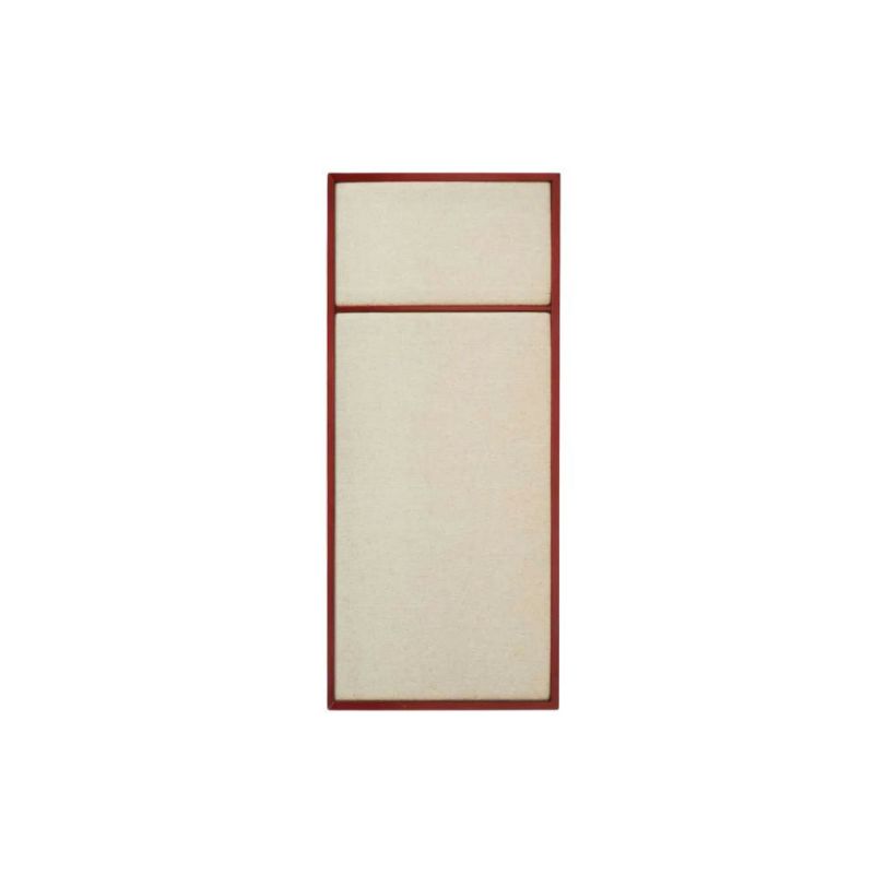 NY PIN-oppslagstavle liten, baskisk rød. NOUVEAU PIN er en stilig og allsidig oppslagstavle, ideell for alt fra bilder og konsertbilletter til moodboards og notater. Designet er inspirert av moderne arkitektur og jugendstilen, med et rektangulært rutenettmønster og en presis kantprofil. Tavlen er tilgjengelig i tre størrelser, alle med en felles skala på den ene siden, noe som gjør det enkelt å kombinere flere tavler til et personlig mønster som er perfekt for både hjem og kontor. Den har en diskret gripekant hele veien rundt og leveres med skjulte monteringsbraketter. Tavlen har også en lydabsorberende effekt, noe som bidrar til en rolig atmosfære.