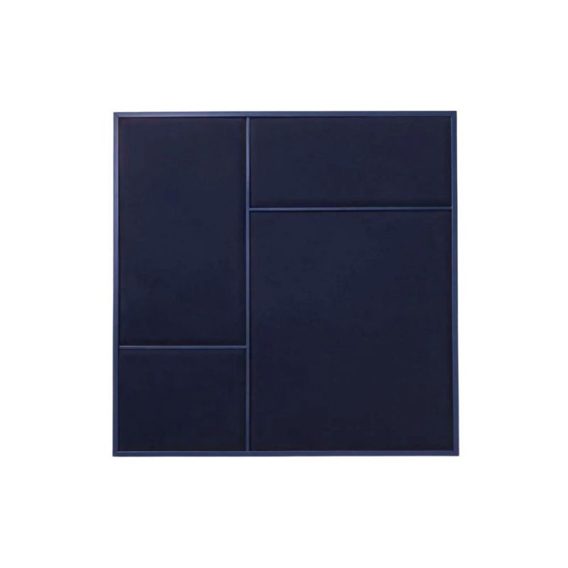 NOUVEAU PIN oppslagstavle medium, marineblå. NOUVEAU PIN er en stilig og allsidig oppslagstavle, ideell for alt fra bilder og konsertbilletter til moodboards og notater. Designet er inspirert av moderne arkitektur og jugendstilen, med et rektangulært rutenettmønster og en presis kantprofil. Tavlen er tilgjengelig i tre størrelser, alle med en felles skala på den ene siden, noe som gjør det enkelt å kombinere flere tavler til et personlig mønster som er perfekt for både hjem og kontor. Den har en diskret gripekant hele veien rundt og leveres med skjulte monteringsbraketter. Tavlen har også en lydabsorberende effekt, noe som bidrar til en rolig atmosfære.