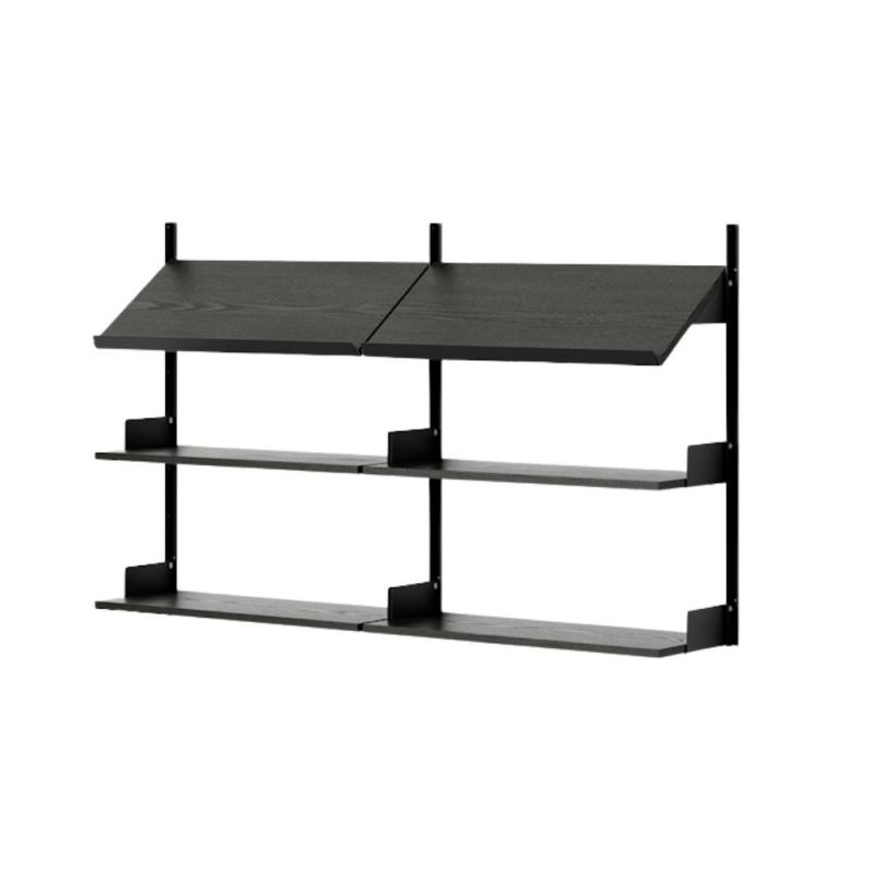 New Works reolsystemet er en enkel og fleksibel vegghylle med et tidløst, nedtonet uttrykk. Designet er gjennomtenkt ned til minste detalj fra de kantede veggskinnene til de integrerte bokstøttene og flate fingerskruer i rustfritt stål.