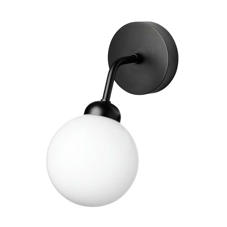 Apiales Vegglampe er en liten, fin lampe som er perfekt til bruk i både entréen, stuen eller soverommet, og med sin munnblåste skjerm i opalglass gir et behagelig og mildt lys. Lampen er laget av metall og er tilgjengelig i enten polert messing eller sort.