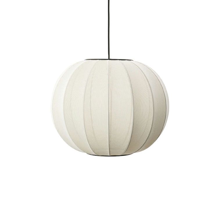 Knit-Wit anhengene fra Made By Hand finnes i mange flotte varianter, farger og størrelser, som absolutt kan brukes i det meste interiøret. Anhengene er laget av strikket flammehemmende garn, som gir en behagelig belysning når lyset kastes ut gjennom maskene.