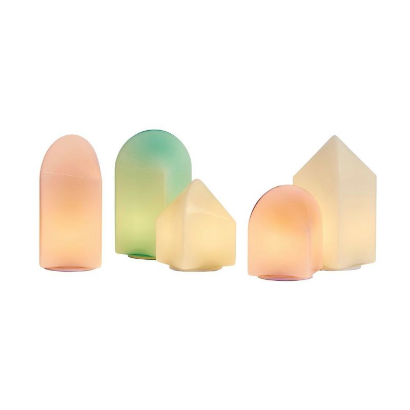 Parade bærbar lampe designet av Viola Heyn-Johnsen og Jonas Trampedach. En elegant, bærbar lampe i farget glass med geometrisk form som endrer uttrykk avhengig av vinkel. Lyskilde og batteri er skjult i den kompakte basen. Perfekt alene, i et sett eller som et dekorativt element både av og på. Kan brukes både innendørs og utendørs. Tilgjengelig i flere farger og størrelser.