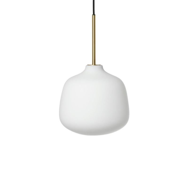 • Materialer: børstet klarlakkert messing, stål, munnblåst opalglass
