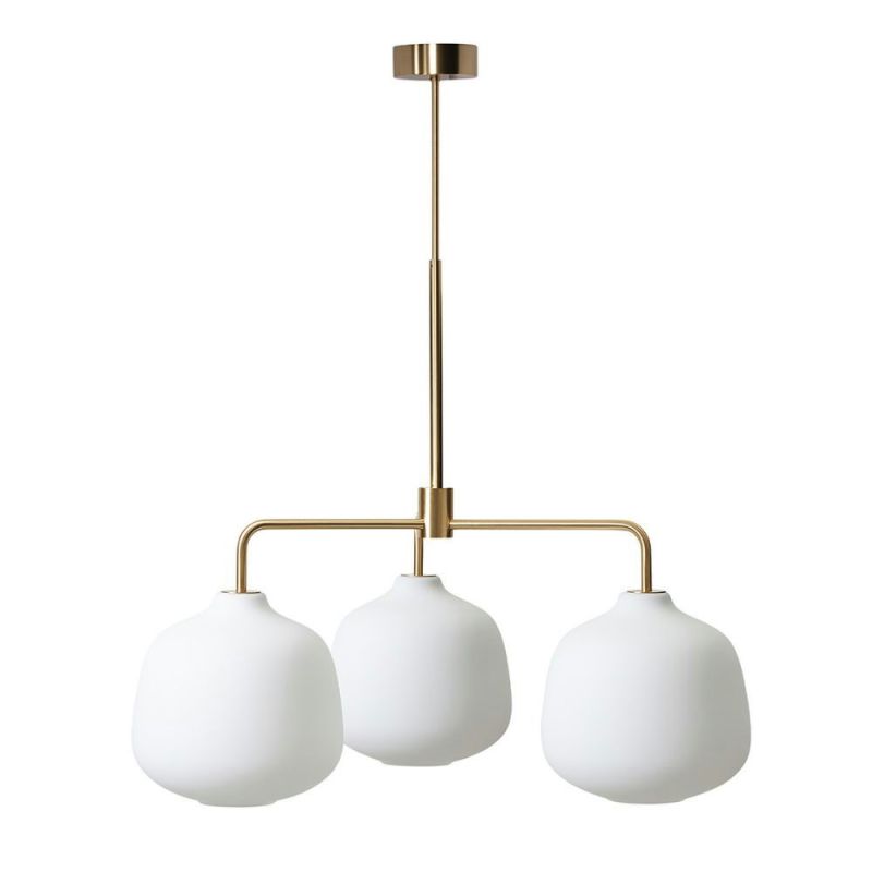 • Materialer: børstet klarlakkert messing, stål, munnblåst opalglass