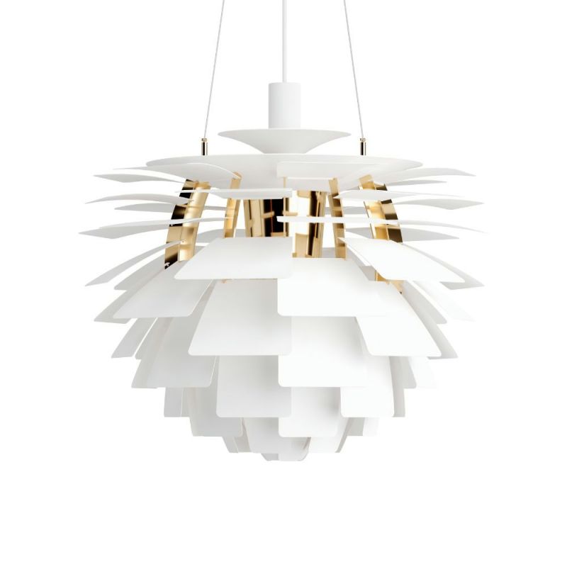 PH Artichoke-pendellampen, designet av Poul Henningsen i 1958 for Langelinie-paviljongen i København, er i dag et internasjonalt anerkjent designikon. Med sine 72 metallblader arrangert i 12 presise rader med seks blader, sikrer lampen et fullstendig blendfritt og behagelig lys - uavhengig av synsvinkel. Navnet refererer til det karakteristiske artisjokklignende designet, som sprer lyset både innover og utover. PH Artichoke bygger videre på ideen bak PHs tidligere Septima-lampe og kombinerer funksjon med skulpturell estetikk i verdensklasse.