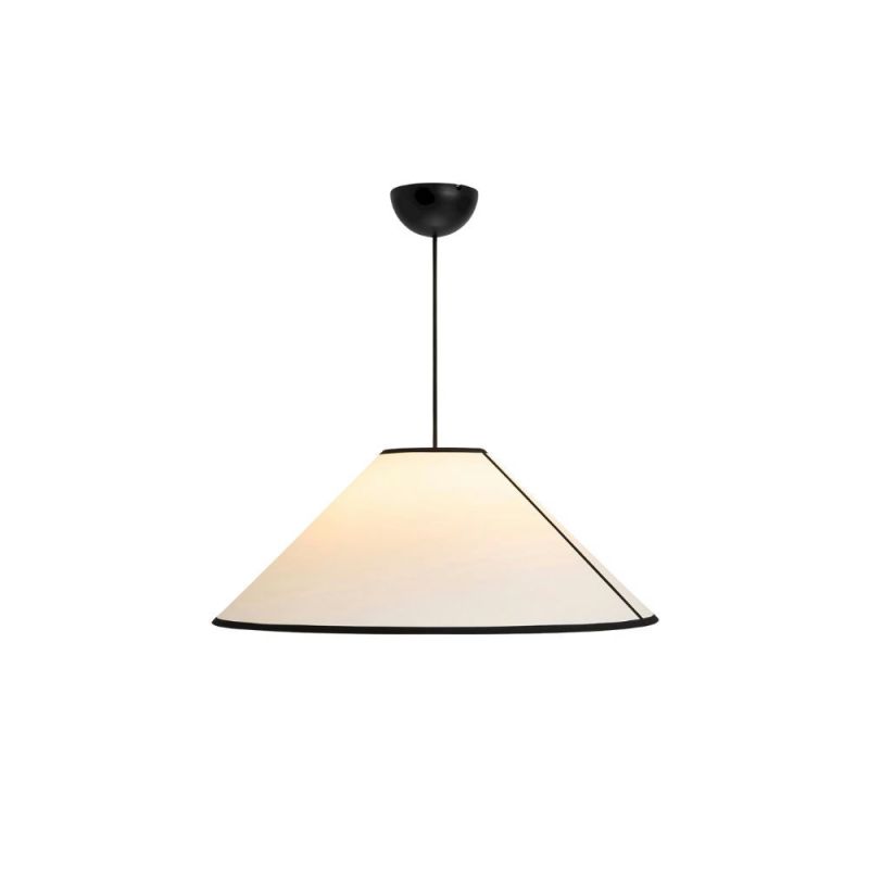 Ava Cone Pendellampe designet av Ana Kra for HAY. Moderne tolkning av den klassiske empire-pendelen med kjegleformet, semi-transparent skjerm i ECOPET (resirkulert PET-plast) og kontrastfull stoffkant. Lampen gir et mykt, stemningsfullt lys og passer perfekt til soverom, ganger, stuer og spisestuer. Leveres med HAY Common Cord Set og bruker utskiftbar, dimbar LED-pære.