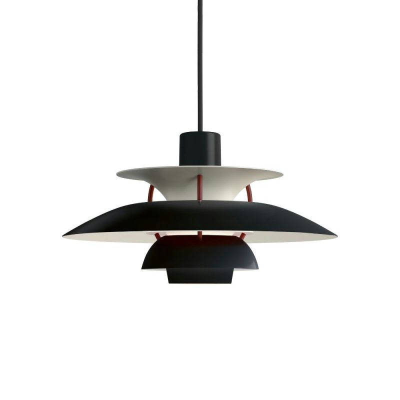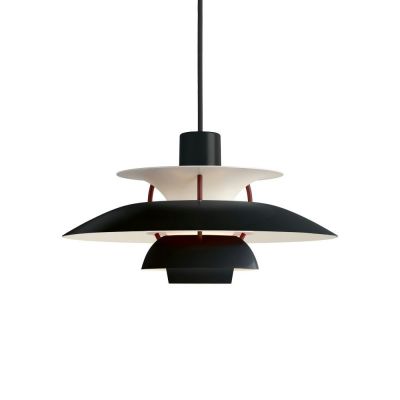 Poul Henningsen designet PH 5 i 1958 som en lampe som kunne brukes med alle lyskilder. Med sitt ikoniske treskjermsystem gir PH 5 et mykt, behagelig og helt blendefritt lys perfekt over spisebordet. De opprinnelige røde og blå nyanser, som skulle forbedre lysets farge, er fjernet i de moderne versjonene, da dagens lyskilder gjengir dagslys langt bedre. PH 5 og den mindre PH 5 Mini (Ø30 cm) passer vakkert inn i både klassiske og moderne hjem. Begge lampene produseres av Louis Poulsen og viderefører Poul Henningsens tidløse designarv.