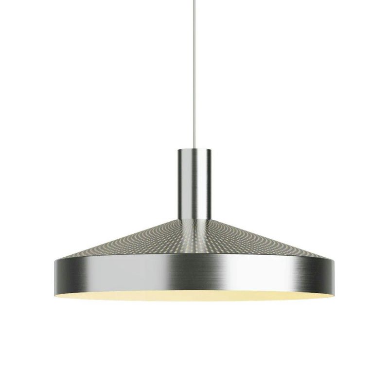 Dawn pendlen tager udgangspunkt i den klassiske værkstedspendel, hvor en laserskåret perforering i lampens overside giver en behagelig og rummelig belysning. Lampens funktionelle belysning kommer fra den hvidmalede inderskærm og den tilbagetrukne lyskilde, hvor det karakteristiske knæk i lampens kant giver en mere defineret retning, mens perforeringen tilføjer up- & down lys.