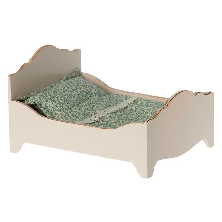 Små mus vil elske å sove i denne tresengen, som er utstyrt med en nydelig madrass og unikt Maileg-lin.