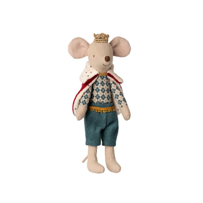 Kongemusen i størrelse far er klar til å være vert på sitt slott. Han har kappe og krone på og passer perfekt inn i slottsalen.