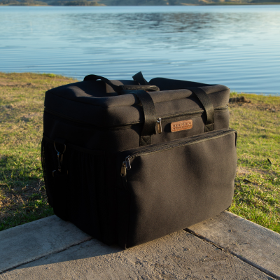 Everdure Cube Proflame 360 Rejsetaske er en holdbar, stilfuld sort kanvastaske med brune PU-læderstropper, designet til CUBE Proflame 360 og Cube Charcoal BBQ. Den tilbyder flere bæremuligheder, en velcrostrop for sikker transport og et alsidigt opbevaringsrum med en snorepose til brugt service.