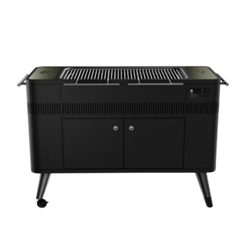 Everdure HUB II EU - Sort er en eksklusiv kullgrill med Fast Flame Ignition, Rotiscope Technology, berøringskontroll for justering av rotisseriets høyde, smart oppbevaring og et elegant titanium-utseende - det ideelle valget for deg som vil grille med stil og gjøre utendørs matlaging enkel og imponerende.