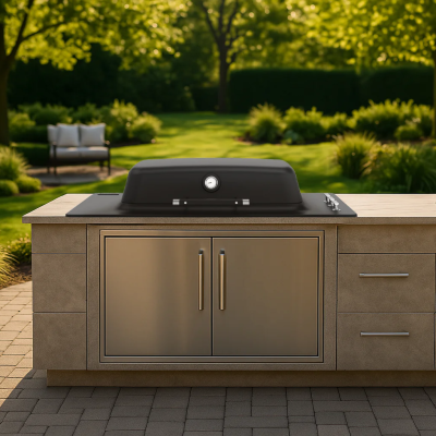 Everdure Built-in Furnace EU - Sort er en elegant innebygd gassgrill med tre brennere, som leverer jevn varme på 27.500 BTU. Den høye lokkkonstruksjonen gir deg mulighet for 360° tilberedning, mens den UV-resistente finishen og de robuste materialene sikrer lang holdbarhet. Det perfekte valget til ethvert utekjøkken.