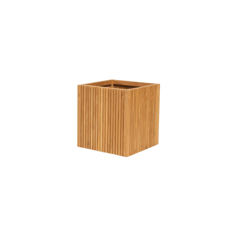 Planteskjuler i klassisk dansk design leveres usamlet og er fremstilt av lange, smale lameller i teak. Når den er montert, fungerer den som en stilren skjuler til planter ute så vel som inne. Snu den opp ned, fjern den løse bunnen, og du har et lite bord som passer perfekt som sidebord ved loungestolen, i stuen eller på soverommet. Den kan også brukes som oppbevaringskasse. Designet kombinerer estetikk og funksjonalitet med flotte, rene linjer.