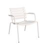 ALUA er en allsidig spisestol i aluminium, designet for bruk i mange forskjellige miljøer fra private balkonger og offentlige parker til kafeer og restauranter. De buede aluminiumslamellene er formet for å gi en behagelig sitteopplevelse og samtidig gi stolen et mykt og innbydende uttrykk. ALUA er designet og produsert med fokus på holdbarhet og er skapt for å tåle mange års utendørs bruk.