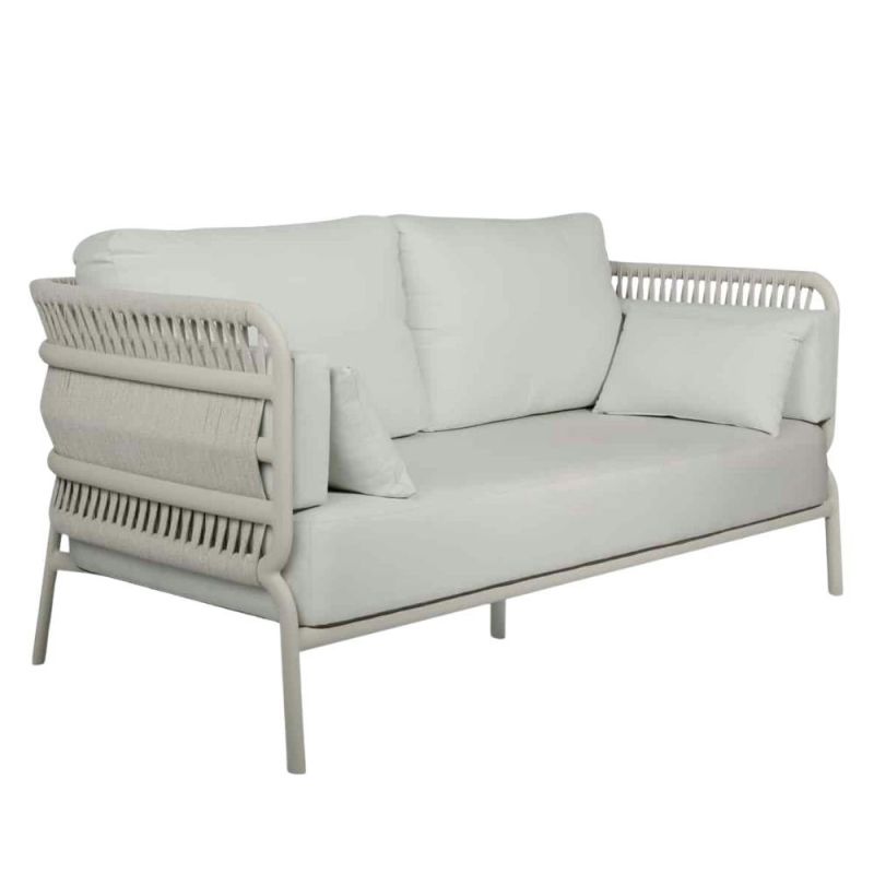 Mindo 106 Sofa, som har plass til 2½ personer, tilbyr romslig komfort med sitt italienske tau-flettverk og en nøye utformet aluminiumsramme. Denne store sofaen kombinerer stil, håndverk og avslapning, noe som gjør den til et perfekt tilskudd til ethvert uteområde.