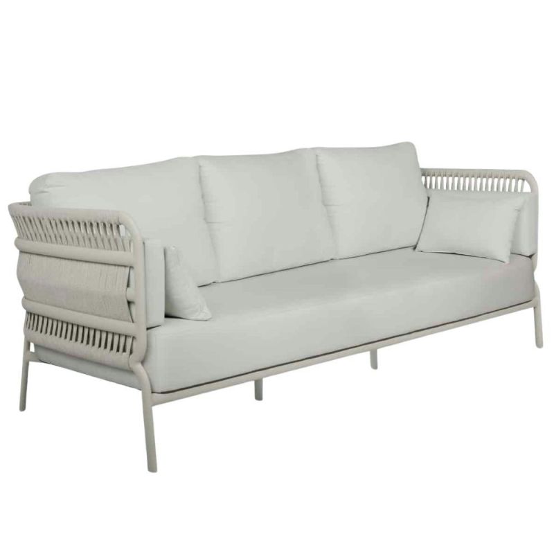 Mindo 106 Sofa med plass til tre personer tilbyr generøse 250 cm sitteplass og fremhever italiensk tau-fletting samt en aluminiumsramme. Det sofistikerte designet kombinerer komfort og håndverk, noe som gjør den til et luksuriøst tilskudd til ethvert uteområde.