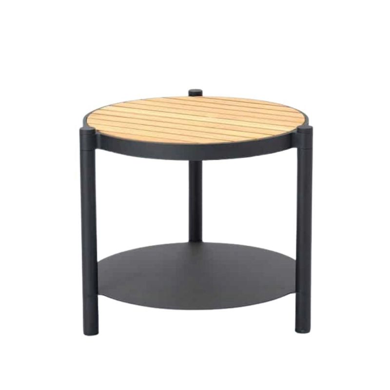 Enkelt, men raffinert, Mindo 107 Sidebord kompletterer ulike interiører med sin elegante aluminiumsramme og praktiske bordplate i teak. Egnet for både innendørs og utendørs bruk, tilbyr det både funksjonalitet og stil.
