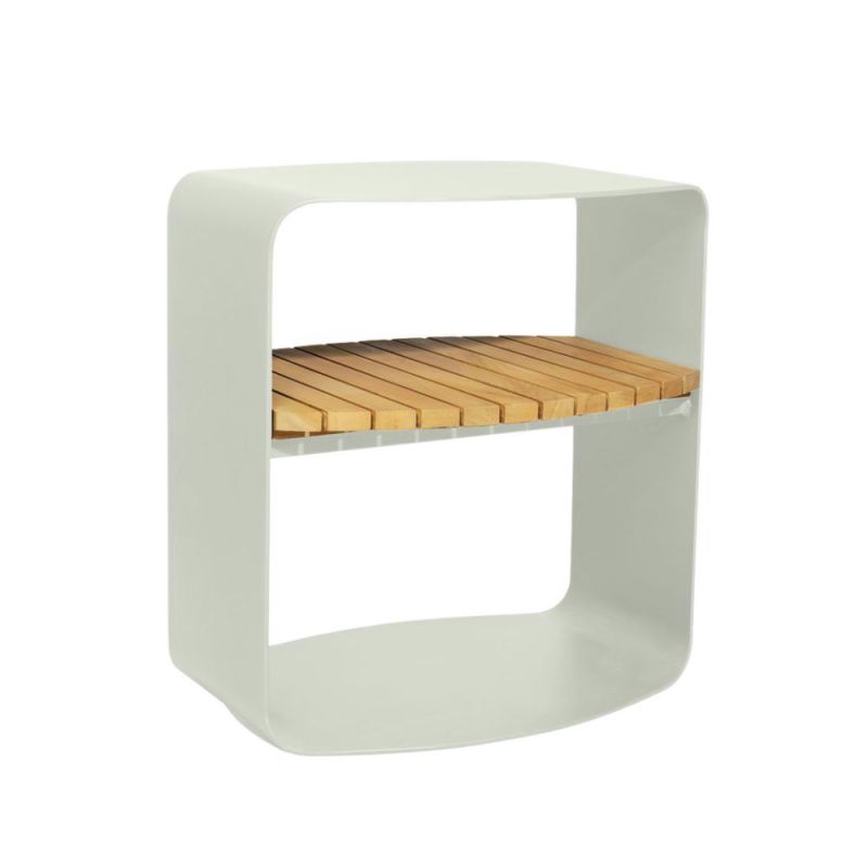 Mindo 109 sidebord kombinerer et elegant aluminiumsstativ med en praktisk teak-hylle. Det åpne og robuste designet gir både stabilitet og mobilitet, noe som gjør det ideelt til terrassen eller i hagen.