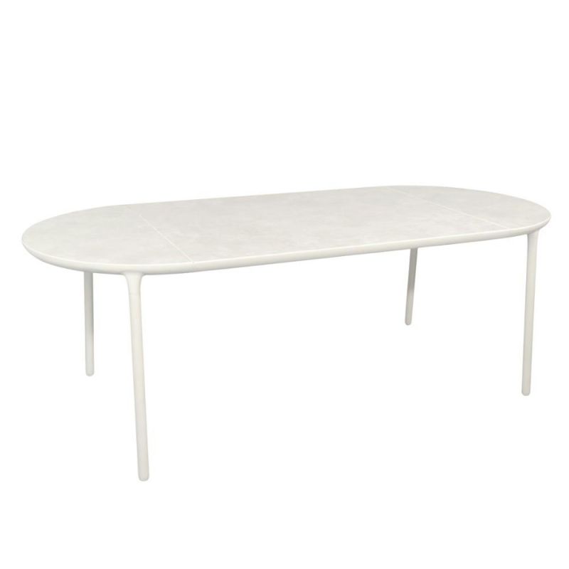 Det ovale Mindo 114 spisebordet har en solid, men elegant aluminiumsramme og en keramikkplate som er designet for å tåle ulike værforhold. Den ovale formen legger til rette for gode samtaler og gjør det til det perfekte valget for sammenkomster med familie og venner.