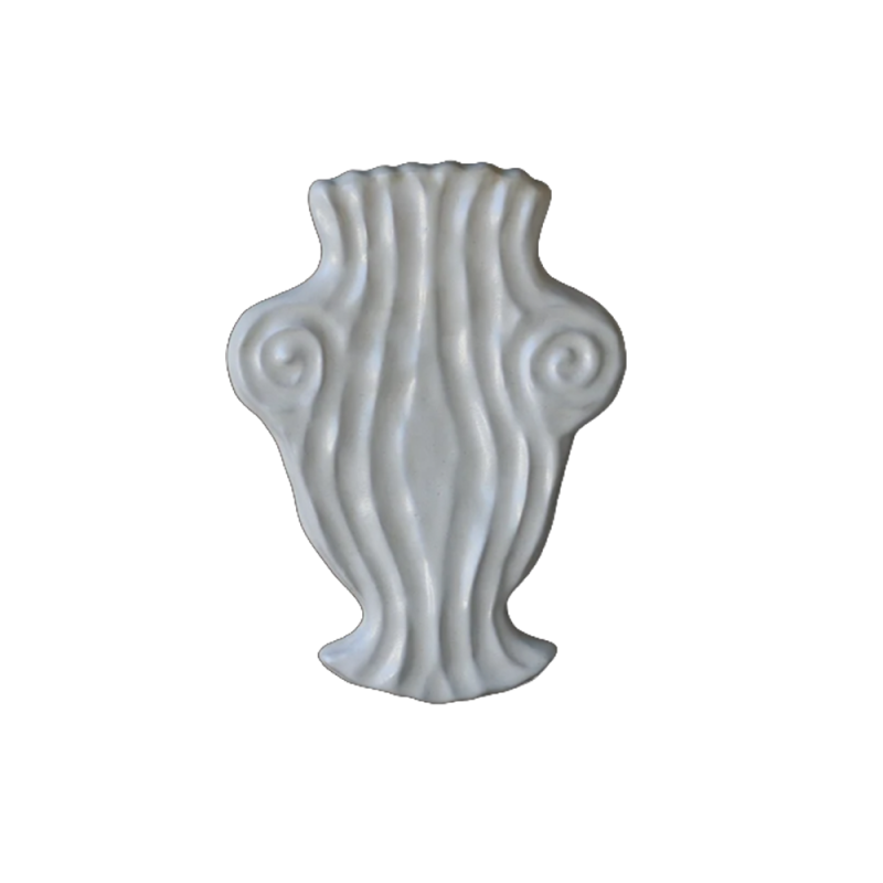 Hvert verk støpes og etterbearbeides for hånd i glasert steintøy med myke variasjoner i antikke nyanser, og er skapt med tanke på å inngå som et veggmontert element.