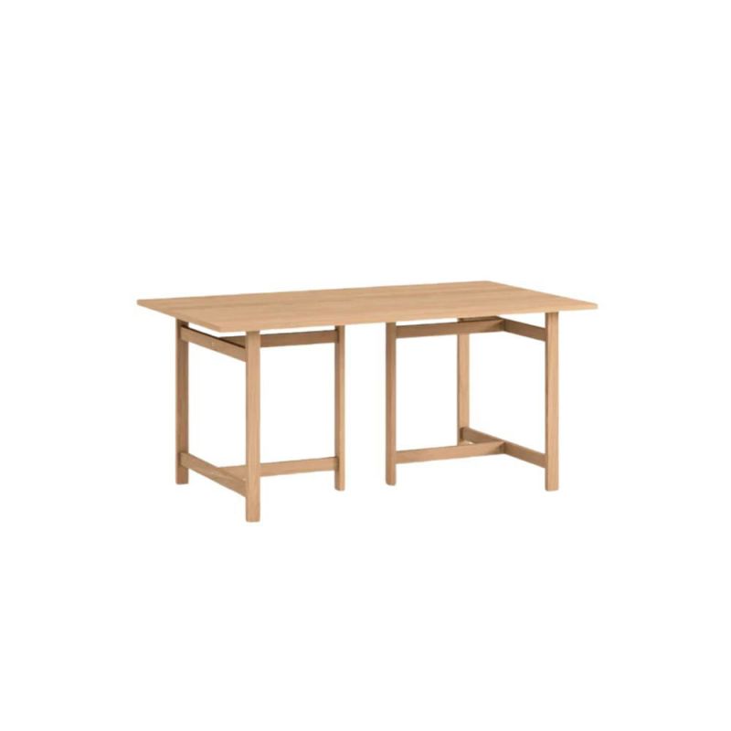 MOEBE Rectangular Dining Table er et enkelt og elegant spisebord med en solid T-rammekonstruksjon og fine messingdetaljer. Bordet er FSC-sertifisert, produsert i Europa og leveres flatpack for enkel montering. Fås med linoleumsoverflate i rød, grønn eller mushroom samt i klassisk eik. Kjøp opptil to forlengelser - én i hver ende - for å utvide bordet med 20 eller 40 cm.