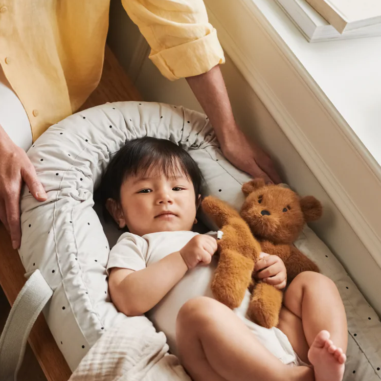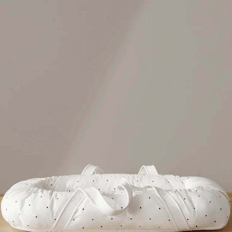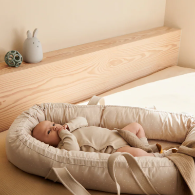 Den perfekte kombinasjonen av en lift og babynest: Praktiske håndtak gjør det enkelt å bære den fra rom til rom i huset eller til og fra barnevognen eller bilen. Trekket er laget av den mykeste økologiske bomull med fine LIEWOOD print, som kan tas av og vaskes.