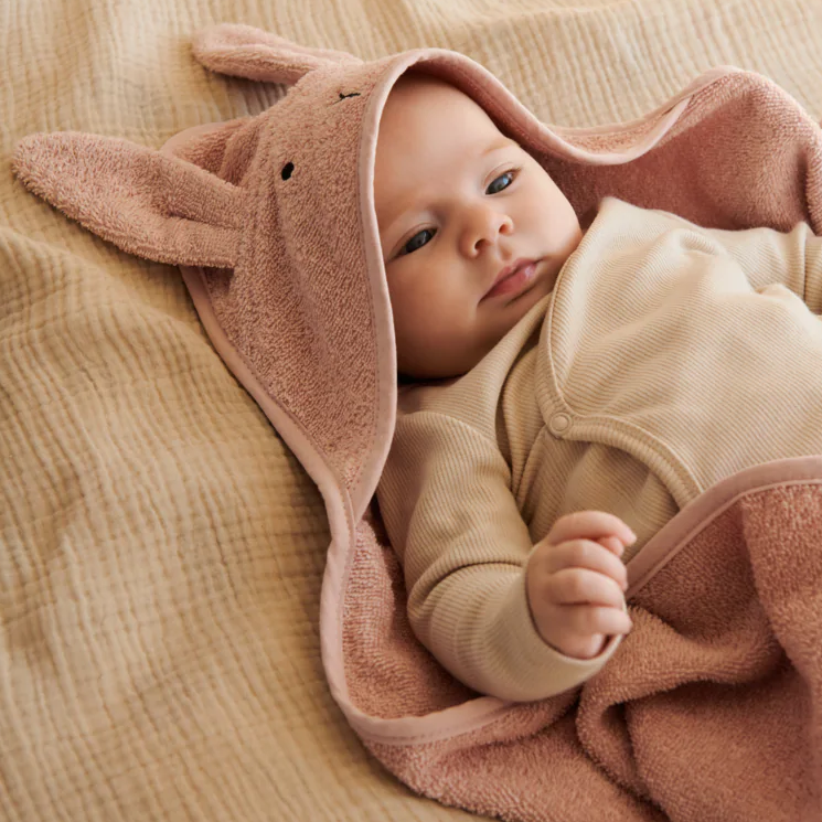 Babyhåndkleet Albert med hette er laget i myk, økologisk bomull og er en favoritt til badetid. Hette med søte dyreansikter sikrer at den lille føler seg varm og komfortabel.