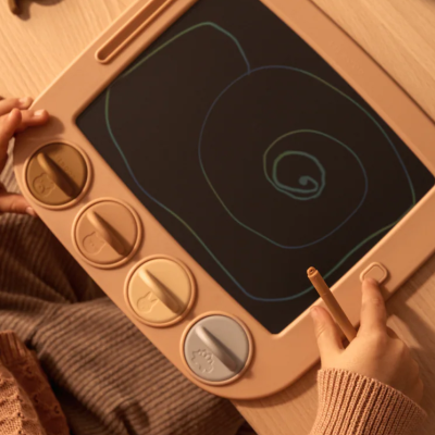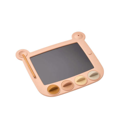 Et bjørneformet LCD-tegnebrett designet for endeløs kreativitet. Kommer med en penn og 4 morsomme silikonstempler. Det er lett og et gjenbrukbart alternativ til papir og blyanter. Har en smart skjermlås, så barnet ditt enkelt kan lagre tegningene sine, og en holder til kulepennen. Perfekt for å slippe fantasien løs når dere er på farten.
