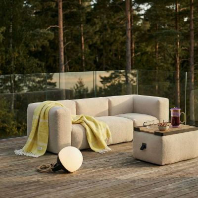 Patio Pouf Tray gjør din Soft Sofa Outdoor Pouf til et praktisk bord. Den firkantede brettet ligger stabilt på puffen og er perfekt til kaffe, servering eller småting. Produsert i teak, som tåler utendørs bruk og får en vakker patina over tid.