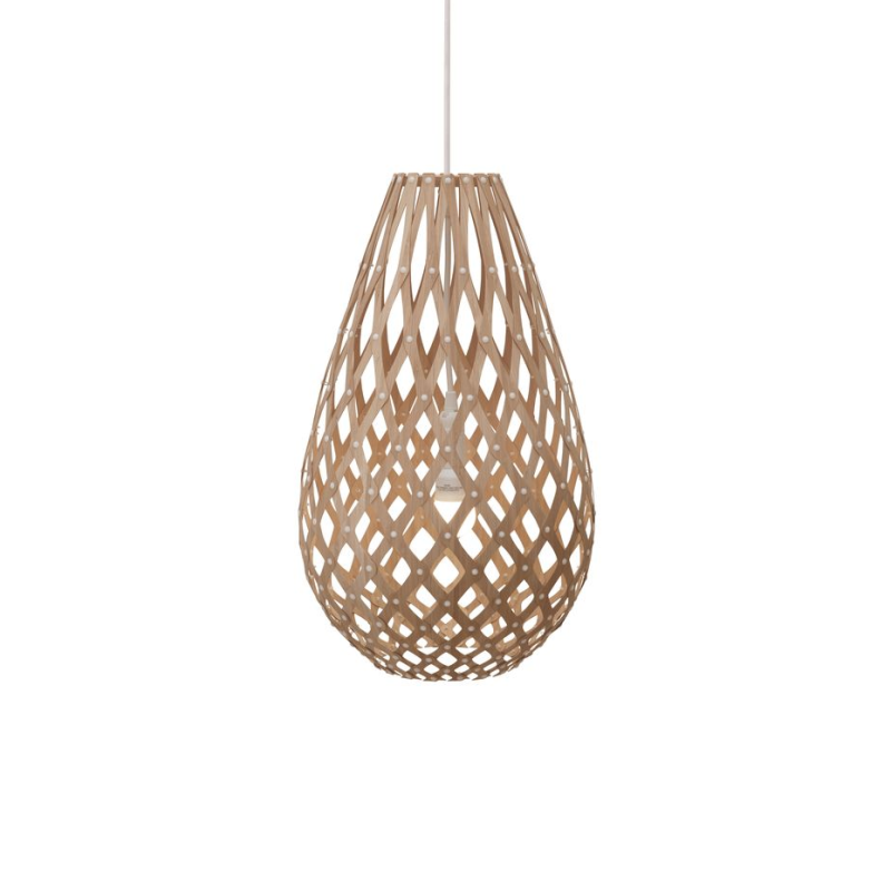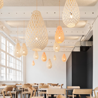Kura-pendelen er inspirert av flettede kurver og den krøllete formen til den newzealandske ferskvannsreken, kura. Det organiske formspråket gir lampen et lett og dekorativt uttrykk, som bringer naturens struktur inn i rommet.