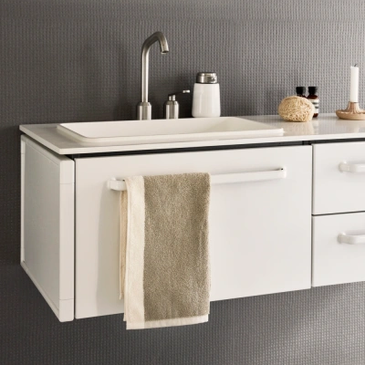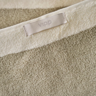 Vipp-håndklærne er vevd i en myk bomullsblanding med høy kvalitet, god absorbering og behagelig mykhet. Det enkle, ensfargede designet med kontrastkant fullendes av en praktisk tekstilstropp.
